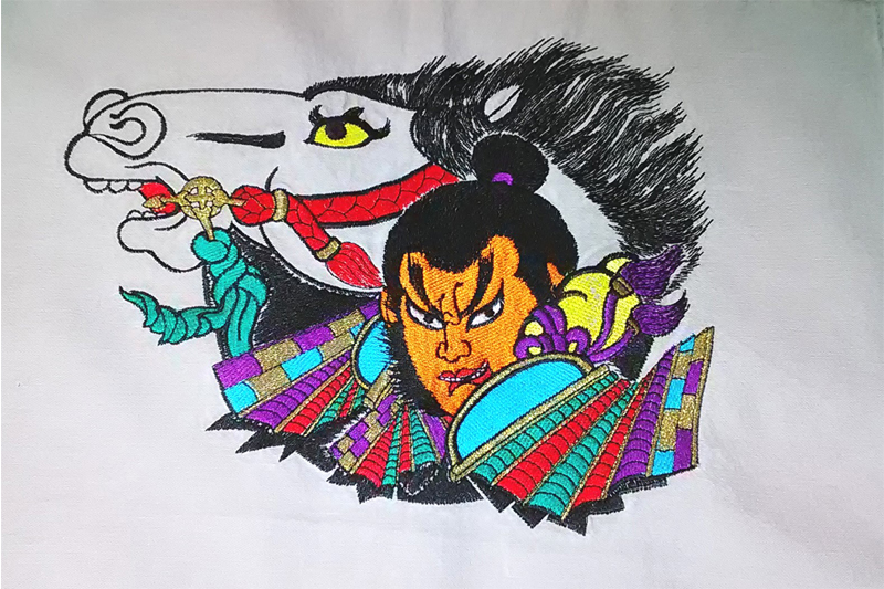 酒蔵・味噌・醤油蔵様の銘柄を総刺繍で表現します。